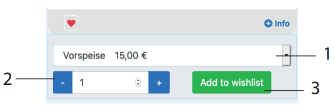 1. Wenn Ihr Artikel mehrere Preise besitzt, zum Beispiel „Vorspeise“ oder „Hauptgericht“, oder „groß“, „klein“, dann können Sie auswählen welchen Artikel Sie zu Ihrer Wunschliste hinzufügen möchten.